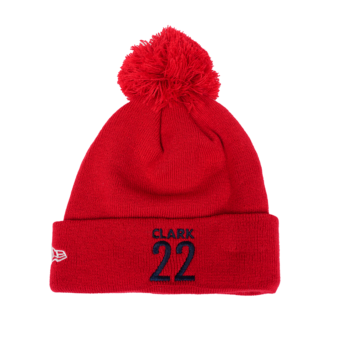 Adult Indiana Fever Caitlin Clark Secondary Logo Pom Knit Hat in Red by New Era