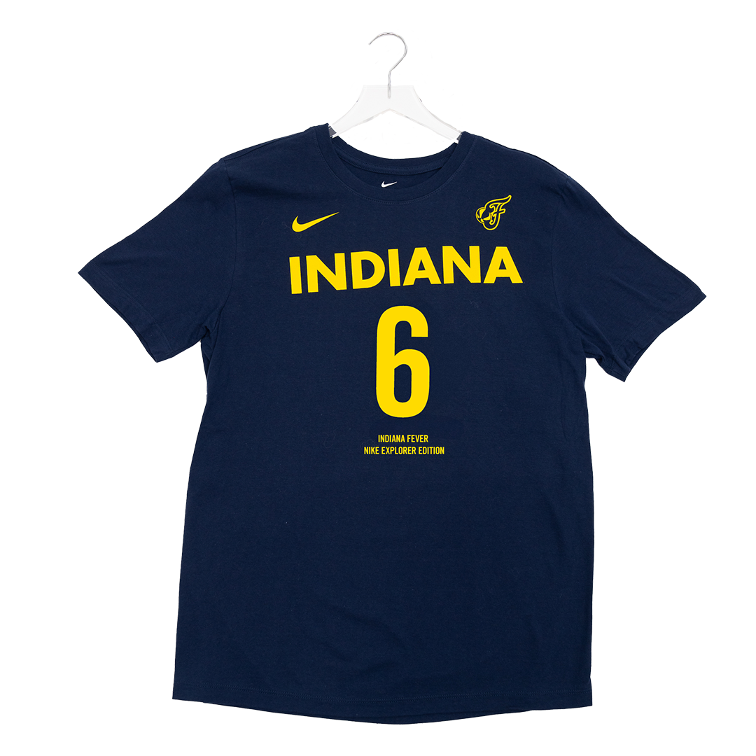 Rep your favorite player in the Indiana Fever Explorer Name & Number T-Shirt. Inspired by the jersey, it displays bold name and number graphics on a casual favorite. Inspired by Lady Victory, the Explorer theme goes navy and the details give a nod to Indiana and Fever history.