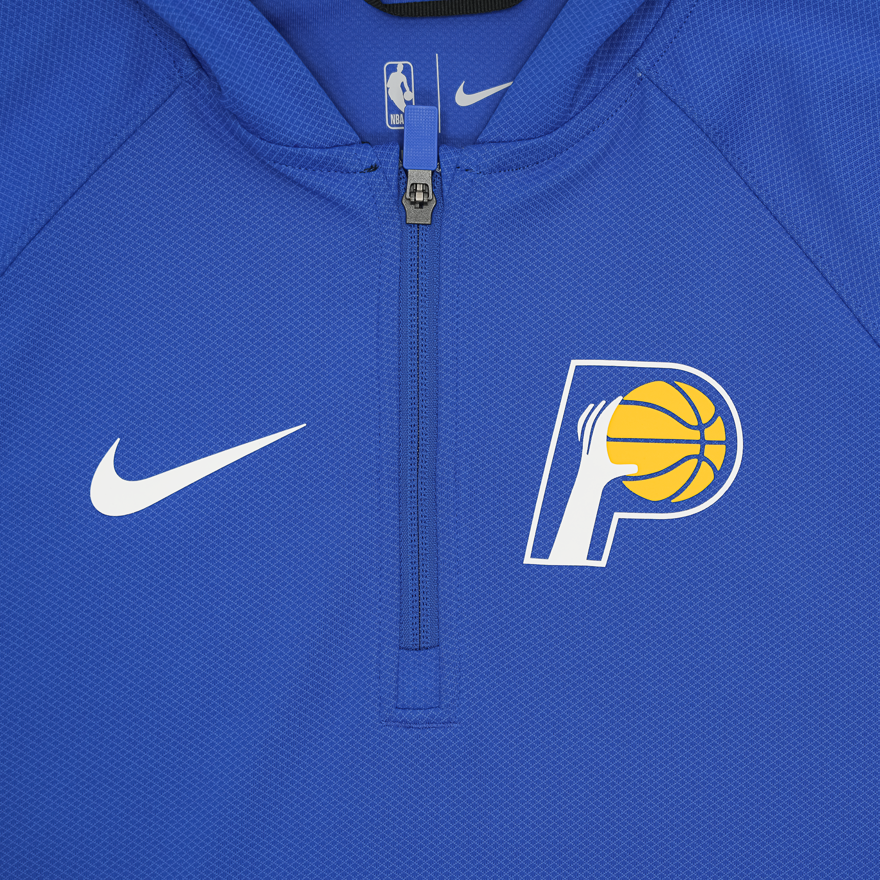 Get that quintessential court-side look with this authentic Pacers quarter-zip hoodie. The stretchy knit construction is engineered to the exact specifications of NBA athletes. Nike Dri-FIT technology moves sweat away from your skin for quicker evaporation, helping you stay dry and comfortable.
