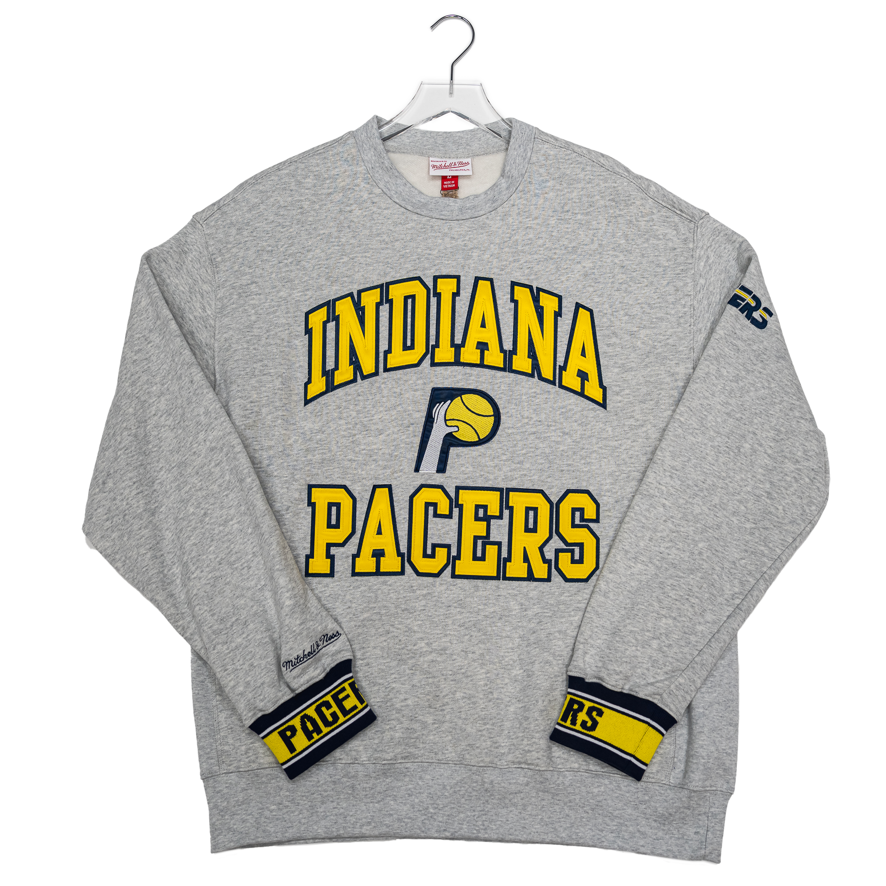 Adult Indiana Pacers Team Celebration Crewneck Sweatshirt in Grey by Mitchell and Ness