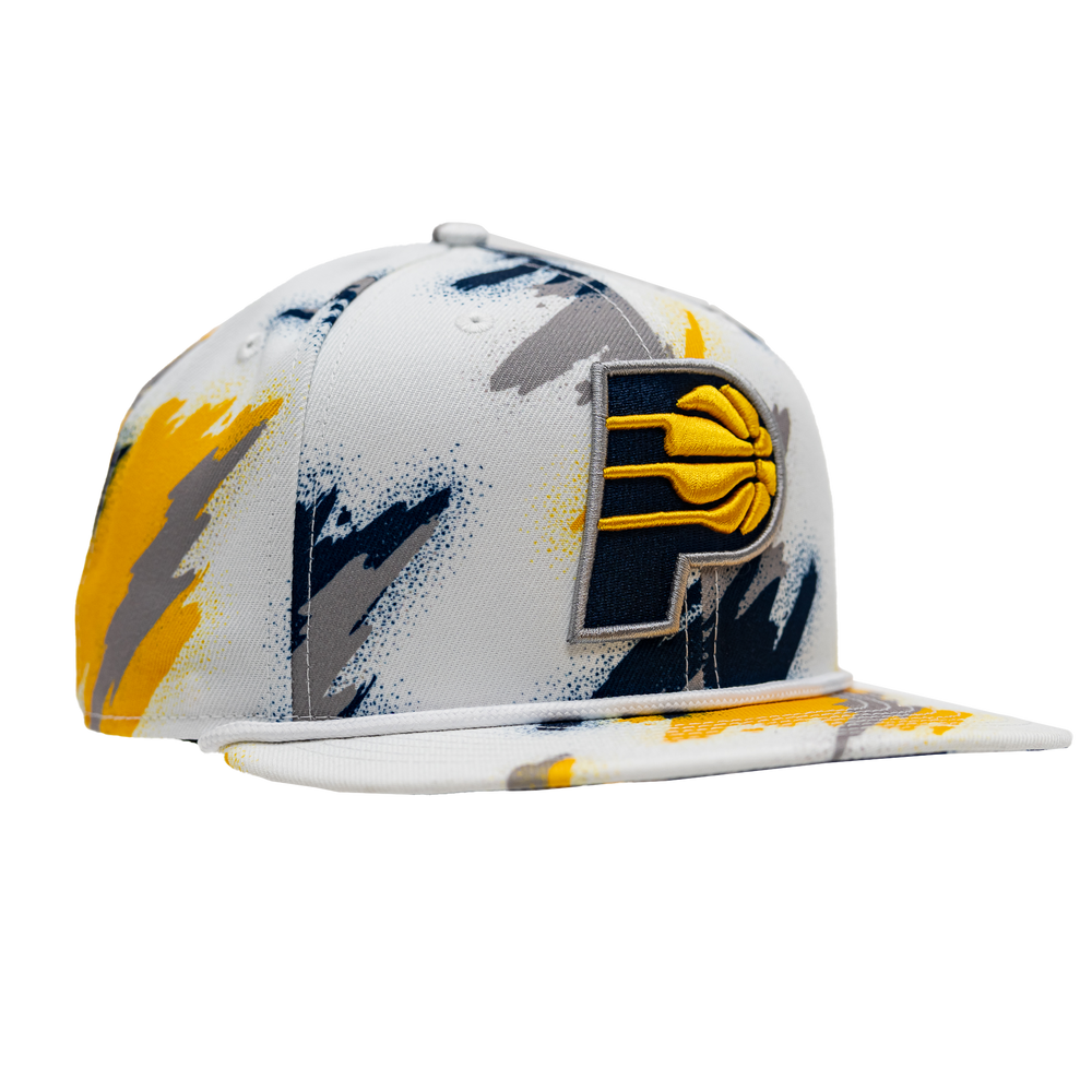 Show your team spirit with this Indiana Pacers Paint 9FIFTY Snapback Hat from New Era. This hat features the iconic New Era 9FIFTY snapback design, ensuring a structured fit and high crown for a modern look. The smooth, sublimated paint pattern graphics all over make a bold statement about your Spurs fandom.