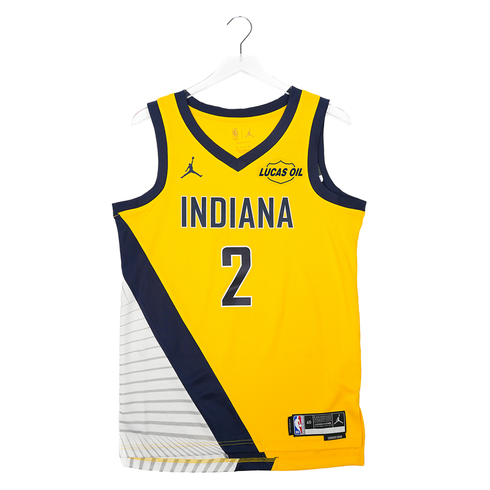 Adult Indiana Pacers #2 Andrew Nembhard Statement Swingman Jersey in Gold by Jordan