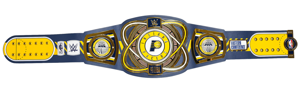 Game time just got a whole lot more interesting thanks to the WWE. Champion your Indiana Pacers pride with this WWE Legacy Title Belt. Slung over your shoulder or fitted around your waist, it will be easy to channel your inner "Stone Cold" Steve Austin, John Cena or Roman Reigns while cheering on the Indiana Pacers. The glory of the NBA and the prestige of the WWE make for one great tag team. THIS BELT IS SOLD ONLINE ONLY.