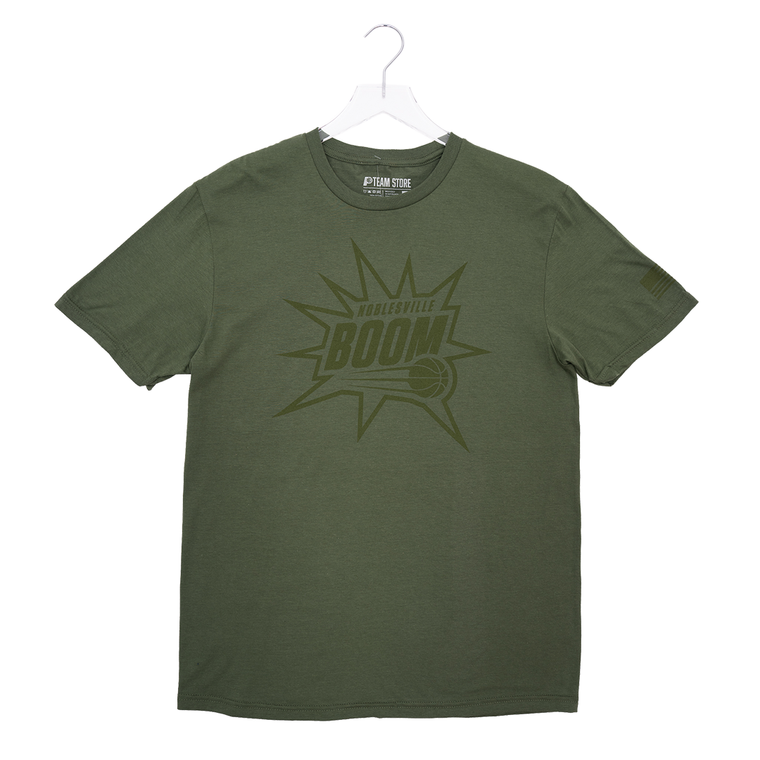 Adult Noblesville Boom Hoops For Troops T-shirt in Olive Green by Boom Team Store