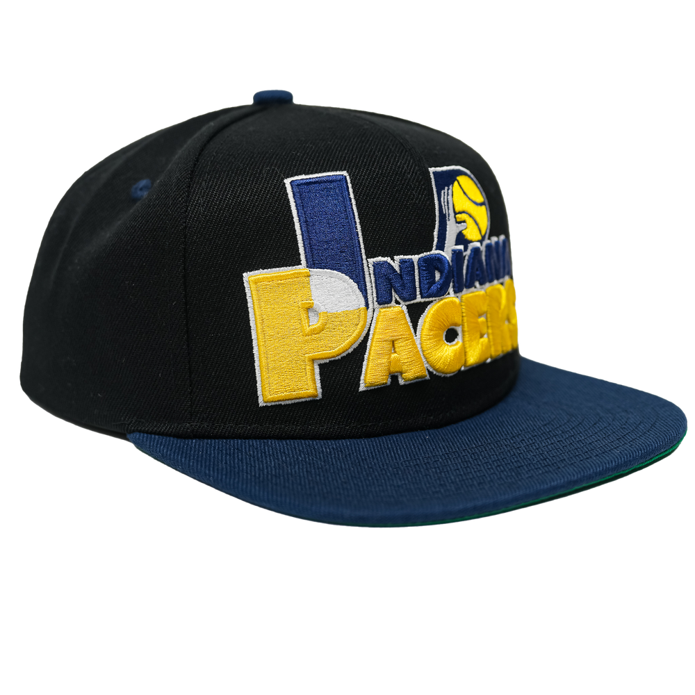 Adult Indiana Pacers Text Stack Hardwood Classics Snapback Hat in Black by Mitchell and Ness